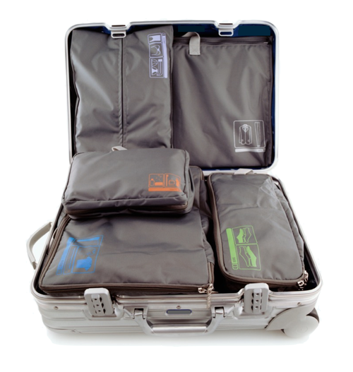 The Spacepak System expanded to include six essential bags: Clothes, Underwear, Shoes, Lingerie, Toiletry, and Garment, each designed for specific packing needs. Spacepak revolutionizes the way you travel.